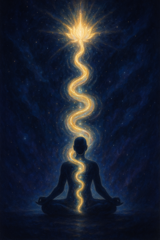 4. Was wird damit gemacht? Er wird auf verschiedene Weise auf dem feinstofflichen zentralen Kanal in der Wirbelsäule angehoben und energetisiert jedes Zentrum, dem er begegnet, bis er Sahasrara, das “Zentrum mit den tausend Blütenblättern”, erreicht, das Zentrum des Heiligen, auf dessen Ebene wir alles mit einer sehr hohen Intensität spüren werden – sogar unendlich, in einem bestimmten Moment – (