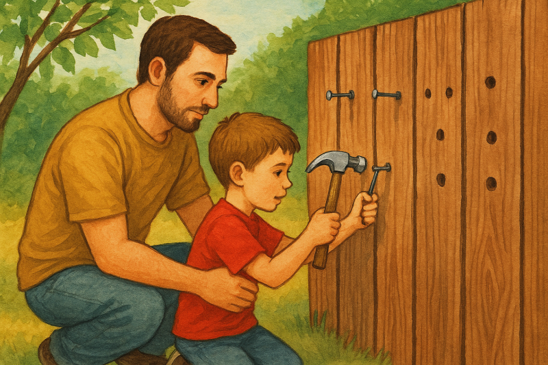 Am ersten Tag schlug der Junge 37 Nägel in den Zaun.